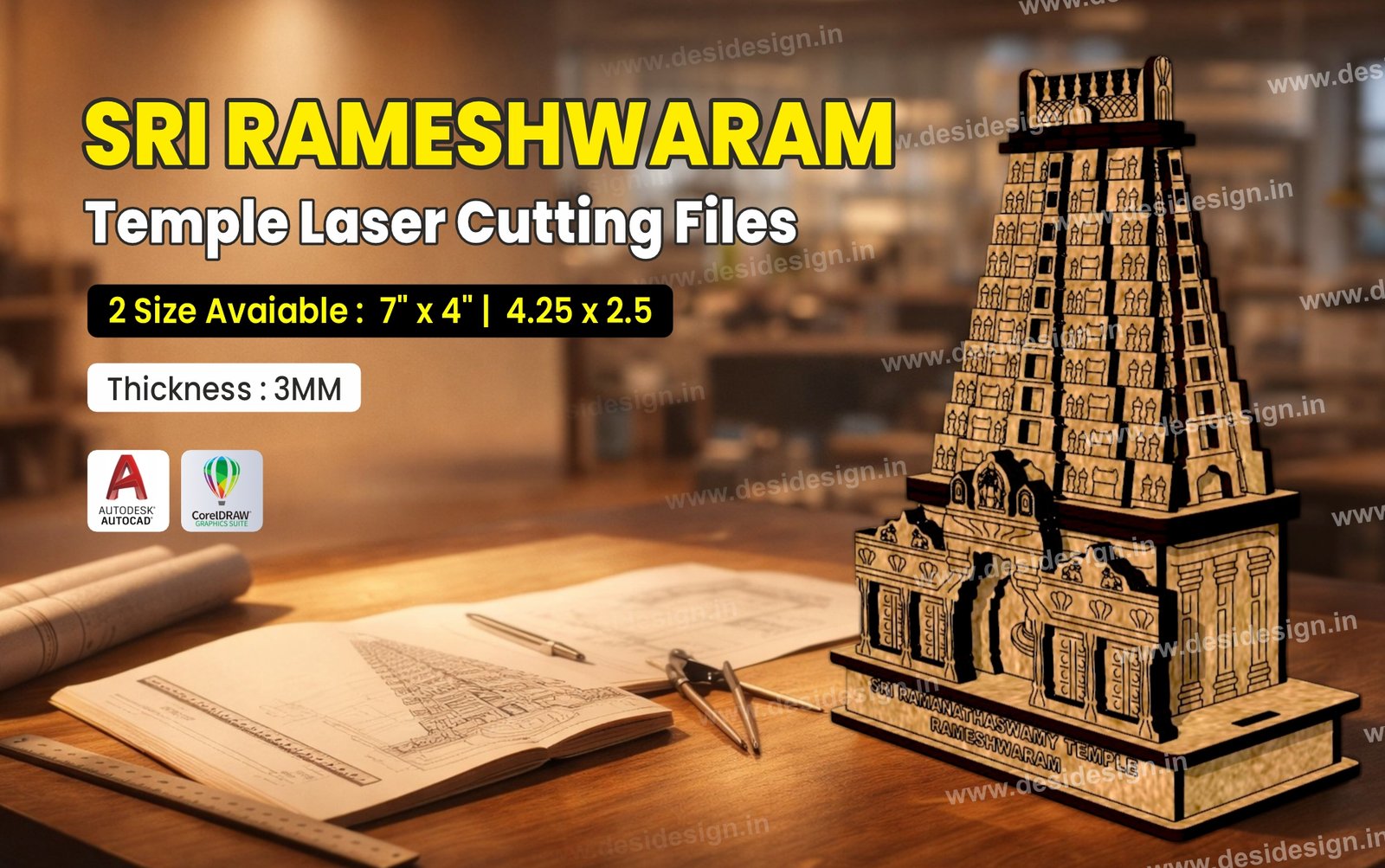 Rameshwaram Jyotirling Temple Laser Cutting Files – 3D Hindu Temple Design | CDR & DXF